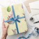 Den här pappra inslagningen är så söt för Påsk, med mönster av vattenfärgade Påskhare och Påskägg för färgad. Den har en bakgrund av citrongult med vitt polka dots.