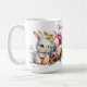 Det här är söt Påsk mugg med en vattenfärgsbild av en vacker Påskhare med Påskägg och blommor. Texten på mugg är anpassade med din egen eller kan lämnas som den är. Fyll mugg med choklad och ge som en söt Påsk-gåva.
