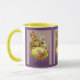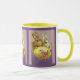 Påsk mugg som visar två kaniner eller Påskhare som bär gåvan av ett Påskägg med lätt färgad.