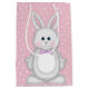 Tvätta vit Påskhare med rosa bowtie på rosa och vit polka punkt mönster.