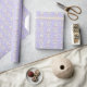 Tvätta vit Påskhare med Glad påsk-tecken inramat i lilacs på vit och lila polka punkt mönster.