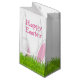 Späd vit Påskhare öron i ljust grönt gräs. Text kan redigeras.