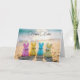 Fyra färggranater av Påskhare, i skuggor av rosa, gult och blått, ligger på en sandstrand med havet i bakgrunden. Text kan ändras.