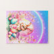 Vacker Bunny med regnbåge och färgad ägg och blommor