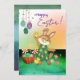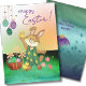 Ha en EGG-CITING PÅSK med det här söta kortet med en kniv som håller en kyckling i handen. Bakgrunden är färgstark vattenfärg. Denna illustration har målats för hand och är av ett slag. Underbar för barn eller någon annan. Glad påsk!