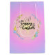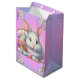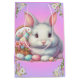En berömvärd vit Påskhare är redot med en basket av pastelläggen från Påsk och vår blommor för att ha gömt gåvor på Påsk förmiddagen med denna vackra presentväska.