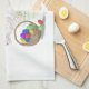 Kökshandduk med en originalillustration av en realistisk kanin och färgstark basket i Påskägg.