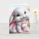 En söt, flytande vit Påskhare med en känslig rosa snöre-klänning sitter i en drömmande blommigt. All text kan ändras.