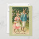 Flicka- och pojkepåsken oavbrutet tjata att gå för en gå i land- och innehavhänder/tassar. Hon är hållande en liten basket av påskägg, honom har stor som fästas på hans baksida. Inskriften läser påskhälsning.
