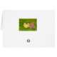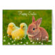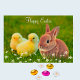 Guldbeige påskhare med kycklingar och blommor Glad påsk-kort. Texten kan anpassas för påsk eller födelsedag.