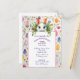 En färgglad påskäggsbakgrund ramar in denna inbjudan till en påskbrunch.