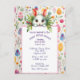 En vit påskhare tittar över ramen för att dekorera toppen av denna inbjudan.