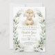 Denna eleganta shower-inbjudan har en söt babykanin omgiven av en vacker vattenfärggrönskande krans