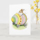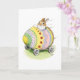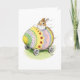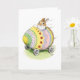 Påskharen kommer med glädje i sin kvicka påskäggsbil! Behåll den ursprungliga texten "Glad påsk" eller anpassa med din egen hälsning. Vi tycker att bilderna ser bäst ut på matta papper. Illustration copyright Wallace Tripp för Pawprints Greeting Cards, Inc.