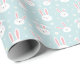 Detta inslagspapper har ett pastellblått påskharensmönster med spridda klotterblommor. Perfekt för glada vårpresenter.
