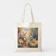En charmig och fantasifull påskshoppingväska med en varm och personlig touch. Vattenfärgstekniken ger den en mjuk och eterisk kvalitet, och den antropomorfa kaninfamiljen tillför en förtjusande berättande element.