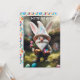 Påskharlekin med korg påskäggsjakt inbjudan. Så här ser det ut när man är delvis kanin och delvis tomte. Anpassa denna mall med text på framsidan och baksidan av kortet. Redigera den för att göra fler ändringar.