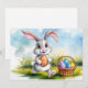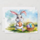 Cute Watercolor Påskhare och Basket Colorful Eggs