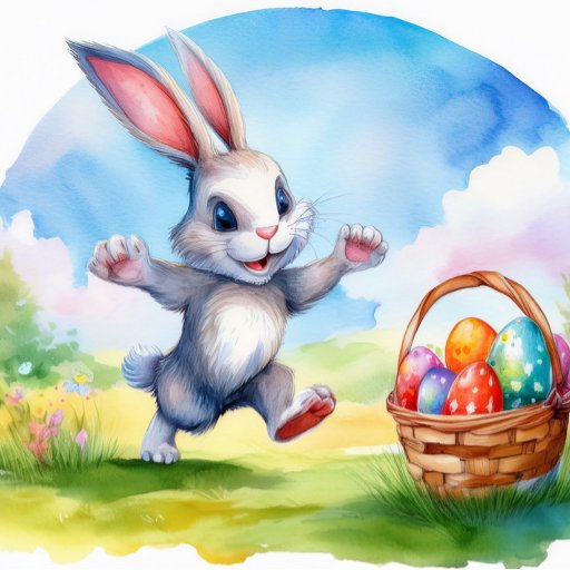 Cute Watercolor Påskhare och Basket Colorful Eggs