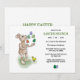 Påskharn klämmer Påskäggen medan den lilla kycklingen är publiken.