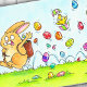 Skicka det här söta Påsk-kortet till vänner och familj för att önska dem ett Glad påsk. På det här kortet hoppar en beige påskhare från höger till lämnat. Han bär med sig en basket på ryggen, från vilken han tar påskägg i hela färg, att han droppar in i gräset när han går förbi. Från ett av dessa ägg är en liten chick kläckning mitt under flygningen. Det ser förvånat ut och inte alltför roligt på situationen.