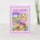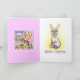 Gulligt och färgrikt påskhälsningkort som presenterar en siamese kattkanin i en älskvärd basketfullt av blommor och söta fester. © Jamie Wogan Edwards