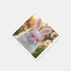 En luddig vit katt prydd med kaninöron och rosa hjärtformade solglasögon sitter lugnt bland blommande vårblommor i solljuset