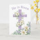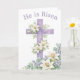 Fira Påskdagen 2026 med detta eleganta påskkort med akvarellmotiv av ett vackert lavendelkors och 'Han är uppstånden'-hälsning. Perfekt för kristna påskhälsningar. Personifiera insidan för en verkligt välsignad och älskad hälsning.