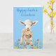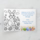 Den här söta påskkortet har ett litet lamm som håller i en korg med påskägg. Vilda blommor omger honom. Kortet kan personifieras för vilket barn som helst. Inuti kortet finns ett personligt meddelande som också kan anpassas. Längst ner finns dekorerade ägg bland vilda blommor. På kortets vänstra insida finns en målarsida med en påskharen och påskägg runt omkring, så att ditt lilla barn kan ha kul och färglägga efter att de sett kortet!