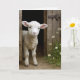 Ett ungt lamm står vid ingången till en rustik trälada, utstrålar oskuld och nyfikenhet, medan Anne Queens slöja och tusenskönor ger en charmig touch till scenen.