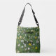 En trädgård av vit- och gultpåskliljar som växer i vildotvungenheten i mörk - grönt gräs.