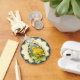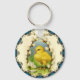 Mycket söt vintagebild av en liten kyckling omgiven av videknoppar som gör en snygg påsknyckelring.