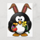 Rolig tecknadpåskpingvin med ägg och blomman.