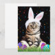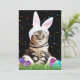 Det här söta och roliga påskaccessoaret för kattälskare skulle vara jättebra att ha på sig under påskäggsjakt. Perfekt för en kattmamma eller kattpappa att ha på sig som en del av en påskkostym! Superbra när du jagar målade ägg gömda av påskharen, eller på en påskfest! Har en grå randig katt som bär påskharens öron och sitter i grönt vårgräs med påskägg, mot en färgglad konfettibakgrund.