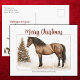 Fira säsongen i tidlös ridstil med detta Paso Fino-häst julkort, med en vacker detaljerad Paso Fino-häst bredvid ett mjukt lysande träd. De vintagefärgade tonerna och naturliga texturerna frammanar en klassisk lantlig charm. Anpassa familjenamnet för en personlig touch som är perfekt för hästentusiaster och rustik julestil. Anpassa din adress och hälsning på baksidan.