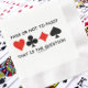 If you've ever played the game of bridge and have pondered whether to pass, you'll enjoy this bridge humor paper napkin featuring the four card suits along with the saying "Pass Or Not To Pass That Is The Question". Do a double-take on what you are pondering about with this common bridge humor saying paper napkin at your next bridge-themed event!