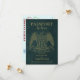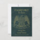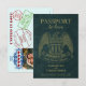 Dessa roliga bröllopskort "spara datum" är designade att se ut som ett pass med teal eller turkos falsk läderbakgrund, en amerikansk örn och guldbokstäver. Baksidan liknar insidan av passet med ett foto och falska ankomststämplar från "port of entry" som listar er bröllopsdestination. Söta, roliga, fantasifulla och unika, dessa kort är ett kreativt sätt att låta era vänner och familj veta att de ska hålla datumet öppet för att resa till ert bröllop.