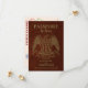 De här söta bröllop spara datum-korten är designade för att se ut som ett pass med rost orange, läderbakgrund, amerikansk örn och guld. Baksidan liknar passets insida med ett foto och en söt ankomsthamn frimärke med en förteckning över din destination i bröllop. Underbart sätt att låta dina vänner och din familj få veta behållan vilket datum som är öppet för resor till bröllop.