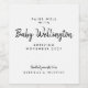 Fira dina spännande nyheter med en ren och modern design som låter ögonblicket tala för sig själv. Den här minimalistiska etiketten för graviditetsannonsering på vinflaska har modern svart typografi på vit bakgrund med frasen "Passar bra med bebis". Ett tidlöst och stilrent sätt att dela dina stora nyheter med din partner, familj eller vänner.