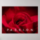 Poster med en fotoavskrift av ett underbart röd ros med PASSION. Anpassa det här objektet eller köp som det är.