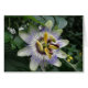 Det här hälsningskortet innehåller ett mycket detaljerat foto av en vacker och exotisk passionblomma. Fotot har tagits med makrofotografi, vilket ger en bild som är så detaljerad att du kan se varje enskild fringerad petal. Färgen i bilden är ljust och levande.