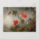 vykort med Martin Johnson Heades oljemålning Passion Flowers with Hummingbird (1883). Två hummingfåglar häckar bredvid vackra röda passionsblommor. En fantastisk gåva till blommigt konst älskare och amerikanska konstentusiaster!