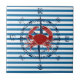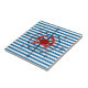 mönster med ljusblått och vitt vågrät är en keramisk platta med ett nautiskt havstema som har en frakt och en röd krabba!