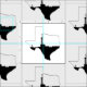 Den svart olje- borranderiggsilhouetten i ett utklipp formar av det statligt av Texas.