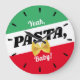 Enkel och djärv pasta eller matköksklocka i Italien med grönt, vitt och rött färg och en enda tarmpasta, personlig med texten.