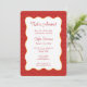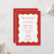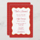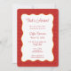 Säg ciao bella till den söta inbjudan till bröllopsfesten! Denna italienska design har en röd pasta-mönstrad kant med en vågig mittdel, som sätter scenen för en rolig och flirtig fest. Perfekt för en blivande brud som älskar kolhydrater, kafébesök och allt som har med amore att göra. Kan anpassas för alla italienska bröllopsbrunch, möhippa eller middagsfirande.