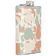 This pastel abstract hip flask features a soft pattern of sage green, peach, and beige shapes, giving a modern minimalist twist to a classic bar accessory. A stylish stainless steel flask, perfect as a unique gift for him, her, or any design-loving cocktail fan.