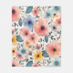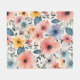 Den här teckningen visar ett känsligt och dynamiskt mönster av blommor i mjuka pastellskuggor av rosa, blått, gult och grädde. Blommorna är mycket detaljerade, med en subtil övertoningseffekt som lägger till djup och dimensioner i varje petal. Blommarnas arrangemang är livlig men ändå harmonisk, med löv och små knoppar som är sammanflätade mellan de större blommorna. Konstruktionen visar färskhet och skönhet och fångar en trädgårds innersta väsen i fullt med en mjuk, romantisk beröring.