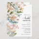 Pastel Blommigt Inbjudningskort för möhippan. Eleganten inbjudningskort för möhippan har vackra, handmålade vattenfärger rosa vår lilies, dammiga blåa sommarblommor och sage botaniska greer.
