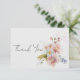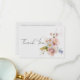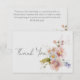 Den här enkla men elegant bröllop-tacksamma kortdesignen har en bukett av rosa, gult och lavendel blommor med grön bakgrund på en texturerad vit vattenfärg, papper bakgrund. Det är en del av Pastel Blommigt Modern Bröllop Suite skapat av enbart Farmhouse Press.
